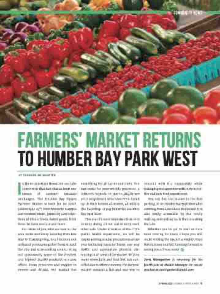 something for all tastes and diets. You can come for your weekly groceries, a leisurely brunch, or just to finally see your neighbours who have been holed up in their homes all winter, all within the backdrop of our beautiful Humber Bay Park West.